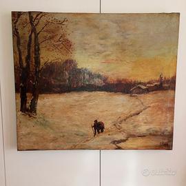 Vendo antico dipinto ad olio su tela a firma G. Resta , telaio coevo, paesaggio invernale tutto originale, epoca fine 800 . Maggiori info al 3711186527 . Solo consegna a mano