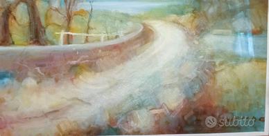 – “Paesaggi con strada bianca” - Particolare quadro ad olio su compensato con cornice, dai colori delicati e pennellate veloci – Firmato G. Serena – Misura cm.70x50