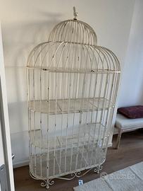 Espositore decorativo in metallo a forma di gabbia per uccelli in stile antico.