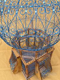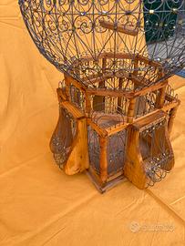 Gabbia / Voliera in stile Orientale a forma di mongolfiera in legno e metallo Diam. 38x50 cm circa Mai utilizzata, ideale anche come oggetto di arredo