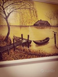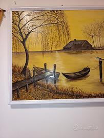 Quadro a olio su masonite misure 54x62 con cornice bianca gabbiano solitario fatto da me
