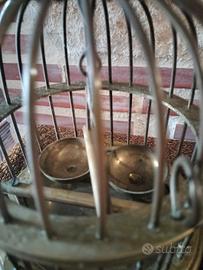 gabbietta in ottone Antichissima , Riproduzione nei minimi particolari e dettaglio, sedile è oscillante, 2 ciotoli, piedistallo, sportello apri e chiudi con apposto chiusura, gancio per appendere. Risale agli anni fine 1800, Orginali British. Faceva parte di una collezione privata di mio padre. Conservazione perfetta, visto l'età.