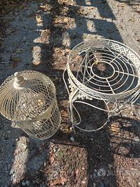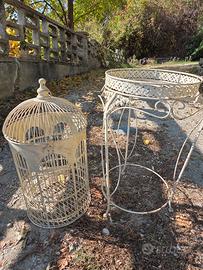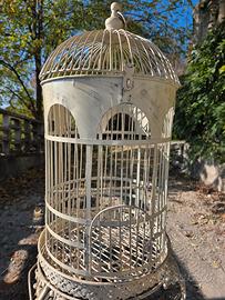 gabbietta porta uccellino con porticina, tetto apribile e sbarra intetna. utilizzabile anche come arredo ( portavaso e tavolino). colore leggermente da ritoccare perche rovinato in alcuni punti (soprattutto parte bassa con un pochino di ruggine).