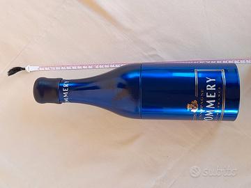 Gadget pubblicitario Pommery champagne France, in alluminio. Le dimensioni sono come quelle di una bottiglia. Colore blu. È in buone condizioni, presenta una piccola graffiatura sul retro, come da foto e un leggero scurimento davanti.
