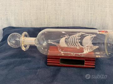 Galeoni Navi in bottiglia vintage su base in legno
