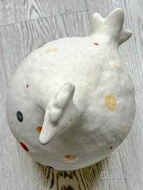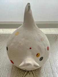 Gallina in ceramica bianca con pallini colorati Con firma sotto Caterina Greci, misure base 38cm, altezza 31cm, profonda 21cm Ritiro a Milano in zona città studi.