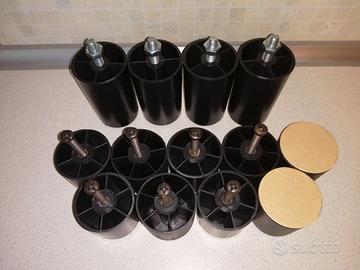 UNDICI PIEDINI PLASTICA PVC NERO PER LETTO DIVANO MOBILI VARI