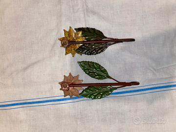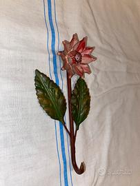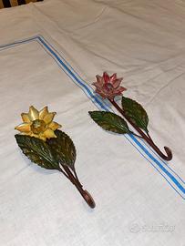 Gancetti utili per appendere stracci in cucina o bagno. In ferro, colori rosa e giallo. a forma di fiore e foglie. 15cm