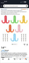 Vendo 6 Pezzi Gancio Appendiabiti Doppio,Vintage Ganci Attaccapanni con 12 Viti,Ganci Appendiabiti da Parete,Ganci appendiabiti colorati,Adatto per Ganci Appendiabiti,Bagno,Cucina,Camera da Letto su amazon il prezzo é di €14,99 io li cedo a €10,00 per inutilizzo sono praticamente nuovi