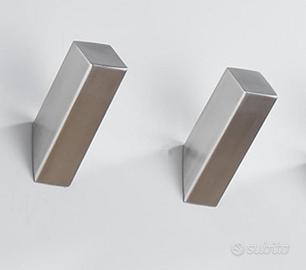 Gancio appendiabiti moderno in acciaio inox spazzolato dal design minimalista e geometrico.