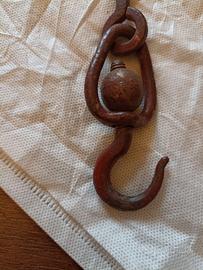 Vendo un gancio per paiolo e una catena per lampadari usati come da foto.La catena è lunga 44 cm.