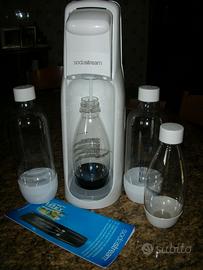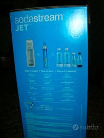 Gasatore Sodastream Jet completo di 4 bottiglie e bombola gas ancora carica. Condizioni pari al nuovo, usato solo per provare. Nella sua confezione originale con libretto istruzioni.