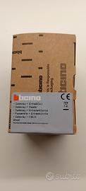 Gateway per creare una installazione connessa nella casa. Può essere usato per controllare luci, tapparelle e apparecchiature elettriche collegate a prese connesse utilizzando lo smartphone e l’app Home + Control, gli assistenti vocali, il comando generale all’ingresso della tua casa. Fornito con il comando scenario master Entra&Esci wireless art. K4570CWI da incasso necessario per la procedura di associazione di tutti i dispositivi connessi. Alimentazione 110-230 Va.c. - Ingombro 2 moduli.