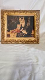 QUADRO CM 36X32 RAFFIGURANTI DEI GATTI STAMPA SU TELA IN CORNICE MOLTO BELLA