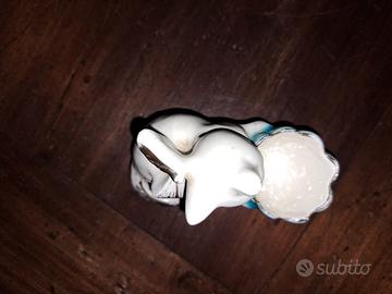 Piccolo gattino con porta oggetti accanto un piccolo porta oggetti, tipo forbicine ecc.