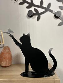 il gatto gioca con una farfalla con profilo tridimensionale.