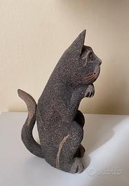Bella figura decorativa di un gatto, realizzata con un materiale che imita la trama della sabbia