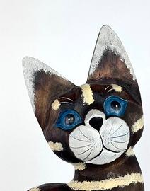 Gatto scultura in legno dipinto a mano