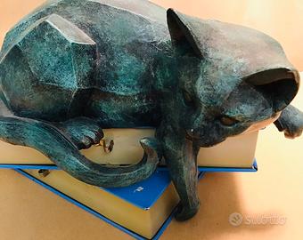 GATTO SDRAIATO by ENESCO U.S.A. lunghezza cm. 20, in resina, anni ‘90 La fotografia è stata fatta con la staruetta sopra un supporto. Il supporto non è compreso.