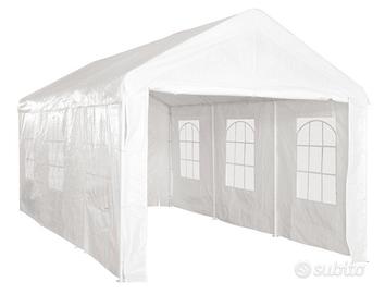 Gazebo Car Parking 6x3 m - struttura ? 38 mm in ferro epoxy bianco - telo plastificato 180 gr bianco con pareti laterali e finestre - altezza max 2,66 m