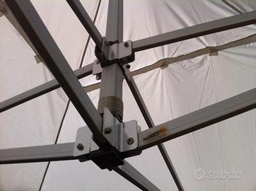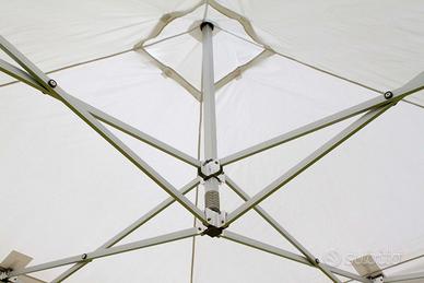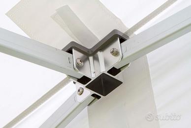 Gazebo Pieghevole Rinforzato Professionale mt 4,00 x 8,00 con struttura in alluminio e copertura in poliestere da 420gr/mq impermeabile, completo di laterali perimetrali.