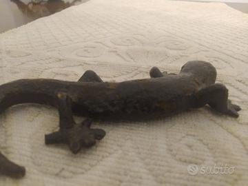 Geco in metallo, antico, cm 12 peso gr. 2007