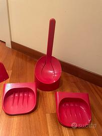 Il set è realizzato in materiale plastico, ABS, colore rosso, completato da elelmenti metallici