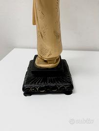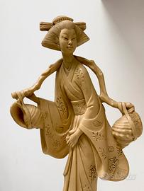 Bellissima scultura di una Geisha in tesina composita di colore avorio e la base laminata nera risalente al 1960 . Il dettaglio nell'intaglio è molto impressionante così come le dimensioni perfette, sottili e belle.