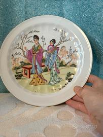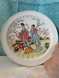 Piatto vintage porcellana bavarese geisha, filo d’oro, in ottime condizioni, diametro 26 cm.