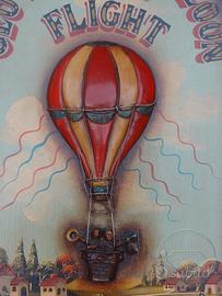 Antica insegna da parete, in legno massiccio, per commemorare il volo in mongolfiera di Geo Blunt a Richmond nel 1816; datata anni "30 del 900. Dipinto a mano e in rilievo.