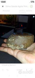 geode di agata con bande grigie, blu/grigie e il centro giallo arancio .con una sezione lucidata e un esterno grezzo naturale .drusa scintillante all'interno . diametro 6/8cm peso tra 300/600gr