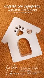 Vendo gessetto profumato a forma di casetta con zampetta, con cuoricino di legno con scritta Love, per amanti di cani e gatti!
