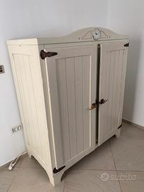 Ghiacciaia in arte povera / country color burro, completa di frigo e freezer, con orologio. Misure del mobile L. 131, Prof. 69, H 151/160 Disponibile visione trasporto a carico compratore