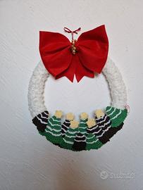 Ghirlanda decorativa natalizia con un grande fiocco rosso e luci colorate integrate. Perfetta per creare un'atmosfera festiva.