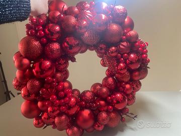 Vendo splendida ghirlanda natalizia artigianale, realizzata interamente a mano con grande cura nei dettagli. Composta da eleganti palline natalizie in diverse dimensioni e texture (opache, lucide, glitter e lavorate), tutte in raffinata tonalità rosso brillante. Un pezzo scenografico e luminoso, ideale per decorare porta d’ingresso, pareti, vetrine, salotto oppure come centro tavola creando un’atmosfera calda e festiva.