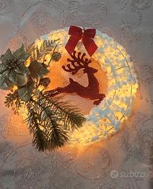 Ghirlanda per Natale con luce, realizzata a mano, ideale come regalo o decoro casa.