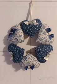 ghirlanda natalizia in stoffa, fantasia tirolese, fatta a mano. Da appendere o centro tavola.