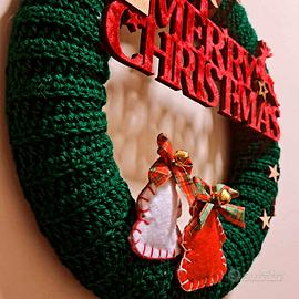 Ghirlanda natalizia lavorata ad uncinetto e con varie applicazioni nuova