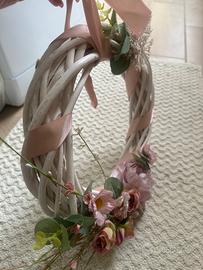 Ghirlanda shabby fatta a mano bianca e fiori rosa nuovissima mai esposta