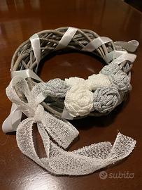 Vendo ghirlande in legno intrecciato decorate con particolari realizzati ad uncinetto.