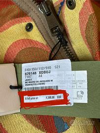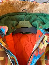 In occasione del centenario della Maison, Gucci ha presentato la collezione Aria con una sfilata esclusiva a Shanghai. Questa giacca con cappuccio in tessuto jacquard è un pezzo iconico della collezione, caratterizzata dal motivo GG reinterpretato in chiave psichedelica. L’ispirazione arriva dall’arte degli anni ’60 e ’70, arricchita da dettagli in stile equestre che donano un look audace e ricercato. Un capo unico, disegnaro a 4 mani da Alessandro Michele e l’allora direttore creativo di Balenciaga.