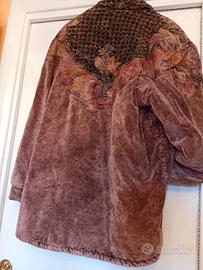 Giaccone moda Positano velluto imbottito con applicazioni tasche chiusura tre bottoni 44/46 colore melanzana