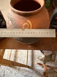 Vaso in terracotta decorato, antica giara di produzione artigianale.