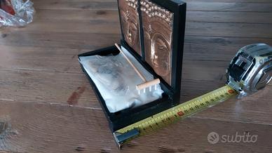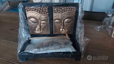 Giardino Zen con immagini di Buddha, sabbia e rastrello