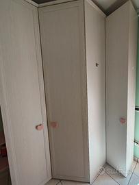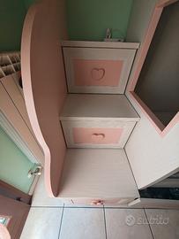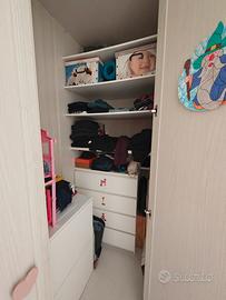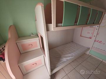 Vendo cameretta completa marca Giesseg perfettamente tenuta così composta: -Letto a soppalco con due letti, due cassetti sotto il letto, scala con tre cassetti (la scala può essere posizionata a dx o sx) -armadio a cabina angolare molto capiente con ripiani e bastoni per appendere Serve almeno una camera 3x3 (dove si trova ora) Misure: Letto (compreso scala) 255x95 Armadio 195 x 105 (più anta piccola che può essere spostata 30 cm) Da smontare. Trasporto e smontaggio carico acquirente.