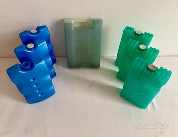 n° 7 mattonelle ghiaccio contenente gel atossico per mantenere più a lungo l’azione refrigerante. Dimensioni : 20 cm. x 11 cm. x 3,5 cm. e una di capacità superiore delle dimensioni di 20 cm. x 15 cm. SOLO RITIRO A MANO NO SPEDIZIONE.