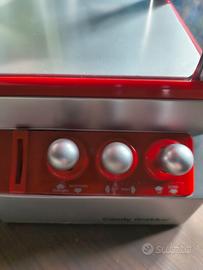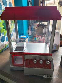 Questo oggetto è un Candy Grabber, una versione in miniatura della classica macchina acchiappa-peluche presente nei luna park. Funzionamento: Utilizza tre joystick per muovere la pinza meccanica in tre dimensioni per afferrare dolciumi o piccoli premi inseriti all'interno. Caratteristiche: È dotata di luci e riproduce musica da luna park per aumentare l'esperienza di gioco. Utilizzo: Richiede l'inserimento di una moneta o gettone per avviare la sessione di gioco a tempo. Dimensioni: circa 35 cm in altezza.