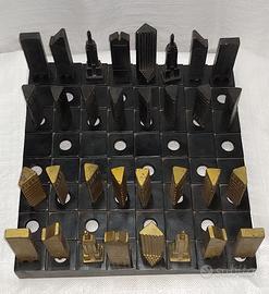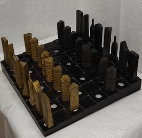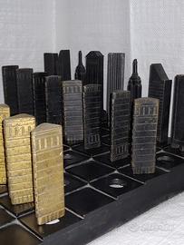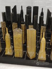 Gioco scacchi grattacieli New York fusione in lega di rame, lavorato a mano pezzo unico Oggetto usato