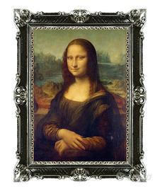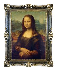 Riproduzione stampata su carta effetto tela della "Gioconda" di Leonardo Da Vinci, uno dei maggiori interpreti del Rinascimento Italiano.