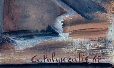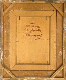 Giorgio Polykratis (Naxos (Grecia), 1931) Maternità olio su compensato, cm 35x25 firmato e datato 68 in basso a sinistra, al verso firmato e titolato